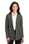 This lightweight, dual-color cardigan layers beautifully and has a timeless appeal. An open front and front and back seaming details at the waist give it sophistication.